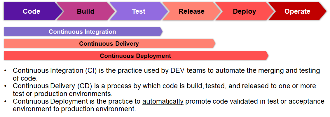 Dans le concept CI/CD et l’approche DevOps, il est ainsi possible de livrer fréquemment aux utilisateurs de nouvelles fonctionnalités en réduisant au maximum le nombre d’incidents, la mise en production devenant quasiment un “non événement”.