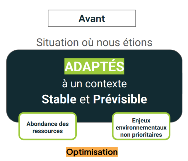 La quête constante de performance et d’optimisation a longtemps été perçue comme une évidence stratégique. Cela est pertinent dans un monde stable, car optimiser suppose un contrôle fort du contexte (énergie, ressources, etc.), une situation où nous pouvons nous adapter à des conditions qui sont prévisibles.